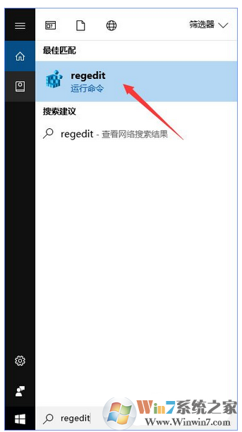 1、在微軟小娜中搜索并打開regedit。