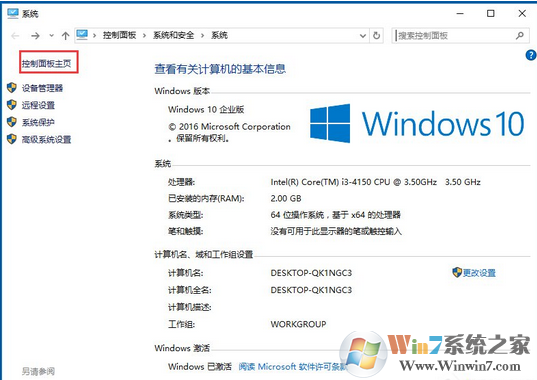 2、點(diǎn)擊以后就切換至了“系統(tǒng)”界面,在該頁面的最左上角找到“控制面板主頁”,點(diǎn)擊以后就會跳轉(zhuǎn)到控制面板了;