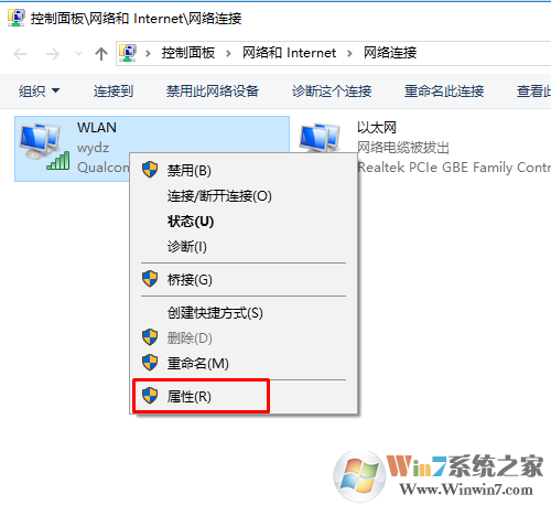 3、選擇剛才你所連上的無線網(wǎng)絡(luò)名所對應(yīng)的無線網(wǎng)絡(luò)連接,右鍵打開其屬性設(shè)置