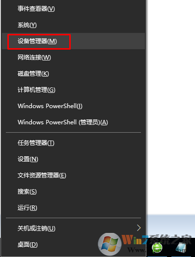 2. 點(diǎn)擊"Win“鍵+X,選擇“設(shè)備管理器”