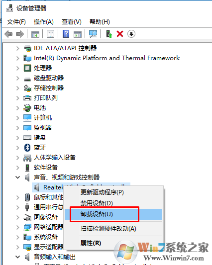 3.在“聲音、視頻”設(shè)備目錄下 ,查看是否安裝有Realtek的驅(qū)動(dòng)(如下圖)
