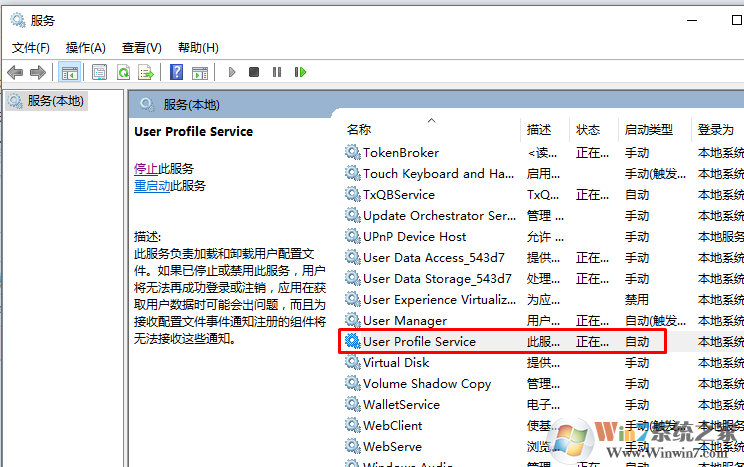 user profile service服務(wù)未能登錄的解決方法圖一