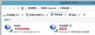 經(jīng)過(guò)第一條命令的設(shè)置和第二條命令的開(kāi)啟,我們就可以看到命令行提示“已啟用承載網(wǎng)絡(luò)”。在網(wǎng)絡(luò)適配器設(shè)置中,可以發(fā)現(xiàn)多出了一個(gè)本地連接 * 22,這里的數(shù)字隨意。并且下方跟著顯示了你設(shè)置的SSID。
