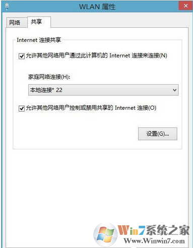 如上圖所示,我可以上網(wǎng)的無(wú)線網(wǎng)卡是我的WLAN設(shè)備,我要把它共享給我的:本地連接* 22。讓這個(gè)虛擬Wifi有數(shù)據(jù)來(lái)源。我們右鍵可上網(wǎng)的網(wǎng)卡設(shè)備,屬性,共享,勾選所有框,選擇對(duì)應(yīng)的虛擬WIFI網(wǎng)卡后確定。