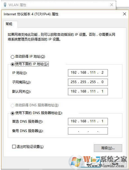 我們打開(kāi)這臺(tái)筆記本上的網(wǎng)卡屬性,找到和第一步一樣的設(shè)置界面進(jìn)行設(shè)置。