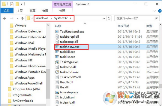 2、到正常的win10系統(tǒng)中拷貝一份 Taskhostw.exe,放入此文件夾中,然后重啟。
