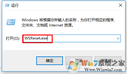 1、按Windows鍵+ R鍵打開運行框,鍵入WSReset.exe并點擊“確定”按鈕。