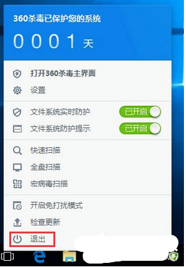 在不需要使用360殺毒軟件的時候在任務欄中找到360殺毒,在該圖標上單擊鼠標右鍵,選擇【退出】即可。