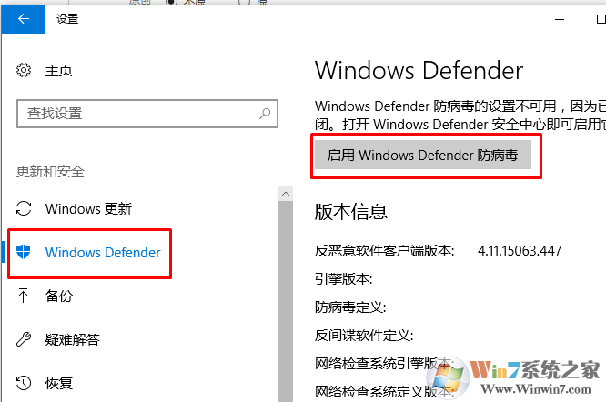 一般情況下這里不建議卸載殺毒軟件。如果真的要卸載360殺毒,那么請開啟win10中自帶的殺毒軟件,打開設置,更新和安全,啟用windows defender,防護病毒。然后跟360安全衛(wèi)士配合使用。