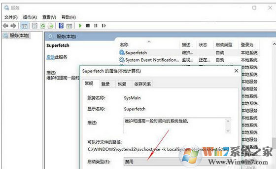 方法:點(diǎn)擊Win10任務(wù)欄搜索框,輸入“服務(wù)”進(jìn)入本地服務(wù)列表,查找并雙擊“Superfetch”,將屬性修改為“禁用”,后重啟計(jì)算機(jī)即可。