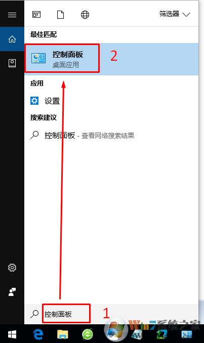 1、打開(kāi)小娜,輸入控制面,單擊打開(kāi)控制面板。