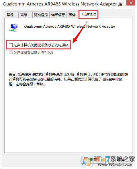 3、將"允許計(jì)算機(jī)關(guān)閉此設(shè)備以節(jié)約電源"前面的勾去掉,然后點(diǎn)擊確定即可。