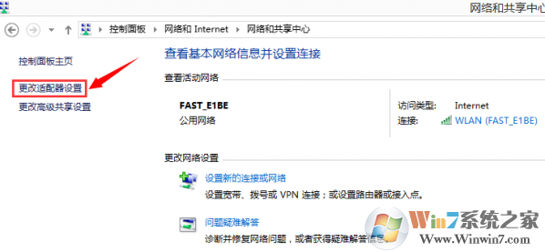 2、接下來(lái)我們點(diǎn)擊"更改適配器設(shè)置",如下圖所示:
