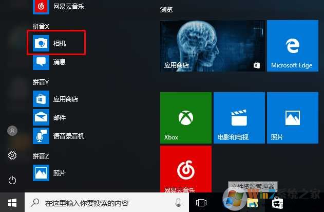 1、在Win10系統(tǒng)下,點擊開始菜單,找到“相機"應用。
