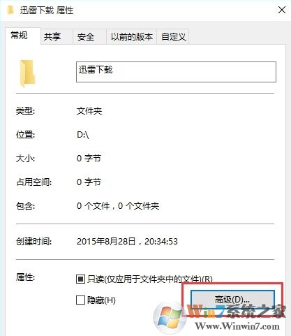 2、然后右鍵點(diǎn)擊你要加密的文件夾,屬性,并點(diǎn)擊高級按鈕,如圖: