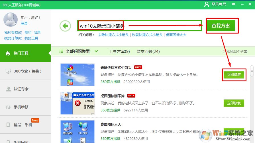 總結(jié):以上就是win10最新版系統(tǒng)去除桌面圖標(biāo)小箭頭的完美解決方法了,網(wǎng)上介紹的修改注冊(cè)表或者是使用bat文件修復(fù)等方法就不要嘗試了,對(duì)于新版本的win10系統(tǒng)沒用。建議使用360安全衛(wèi)士中的修復(fù)工具修復(fù)。