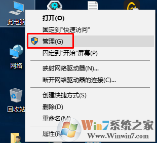 1、桌面此電腦,右鍵打開(kāi)管理。