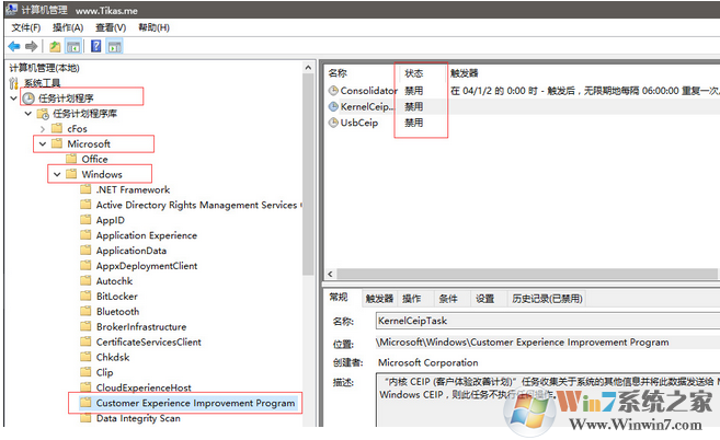 2、定位到:任務(wù)計(jì)劃程序庫(kù)\Microsoft\Windows\customer experience improvement program