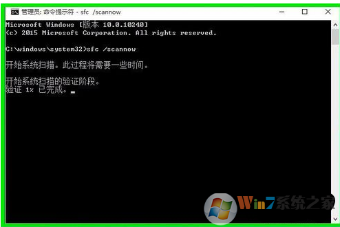 2、輸入sfc /scannow 等待修復(fù)完成即可。