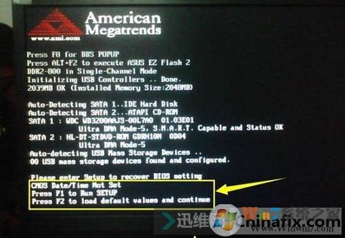4.開機(jī)后,提示按F1或F2鍵,才能進(jìn)入系統(tǒng)。