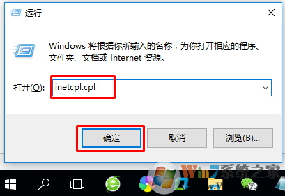 1、在鍵盤上按下Windows鍵+R 打開運行框,輸入:inetcpl.cpl 點擊確定;
