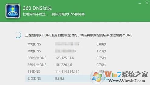 8、同時借助“360DNS優(yōu)化”工具可以實現(xiàn)最優(yōu)化網(wǎng)絡(luò) DNS篩選功能,從而解決“網(wǎng)絡(luò)不穩(wěn)定”或“無法打開網(wǎng)頁”的問題。