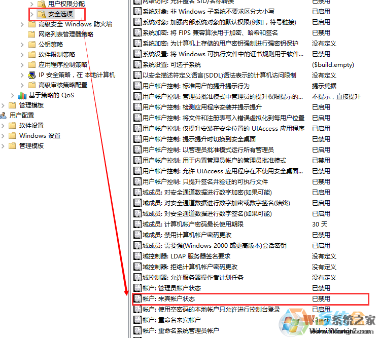 【本地策略】—【安全選項(xiàng)】—【賬戶:來賓賬戶狀態(tài)】