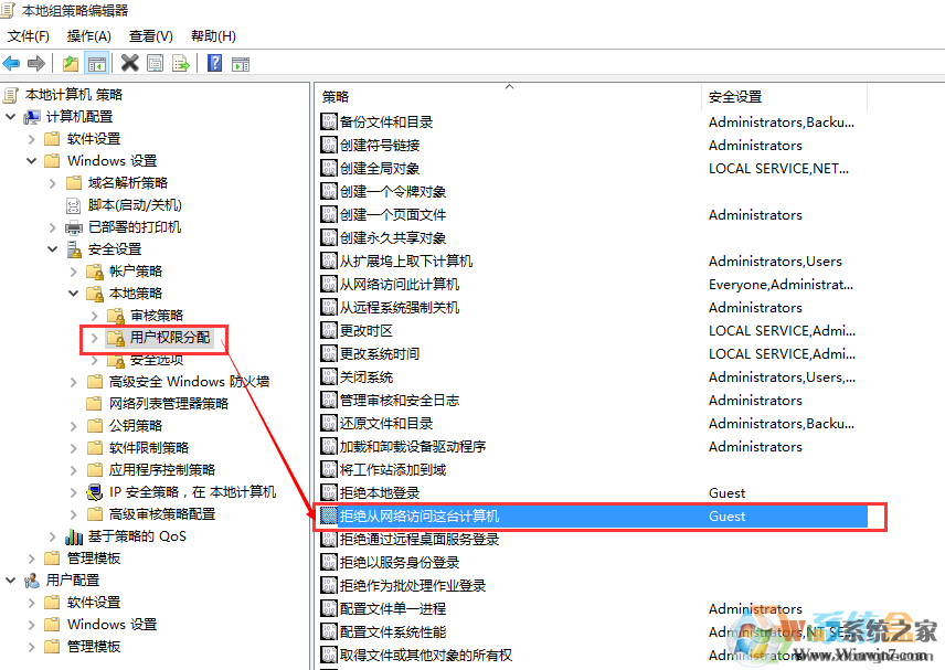 (這里的修改很重要,win7和win8【拒絕從網(wǎng)絡(luò)訪問這臺(tái)計(jì)算機(jī)】默認(rèn)為空,只有win10默認(rèn)添加了guest)