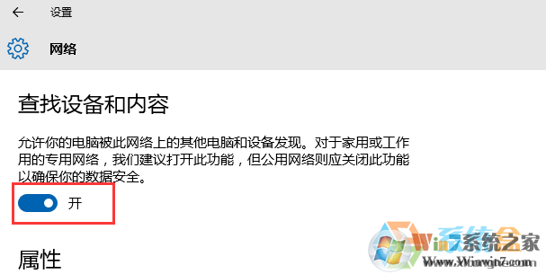 打開你的網(wǎng)絡(luò)設(shè)置 ——選擇你正在使用的網(wǎng)絡(luò)——查找設(shè)備和內(nèi)容——【開】