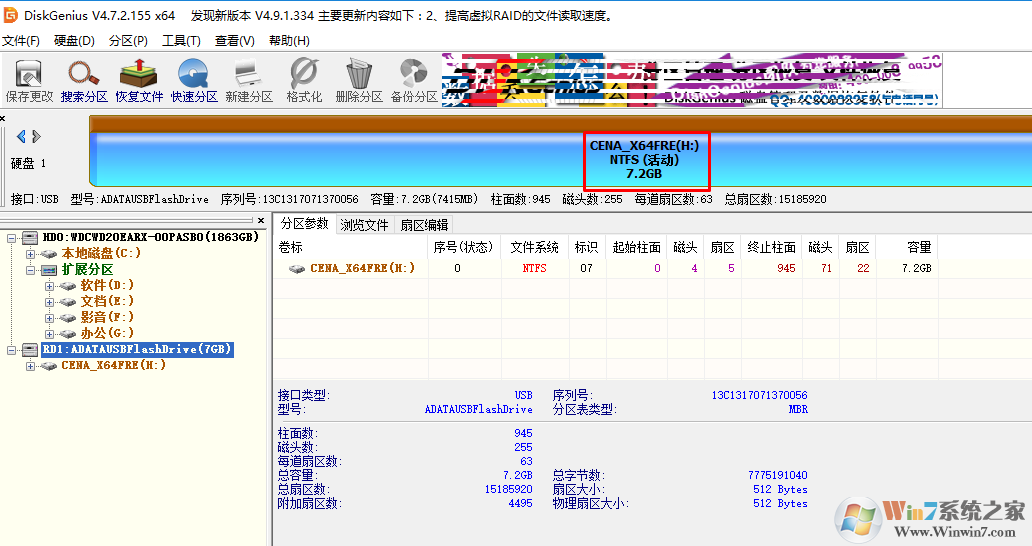 7、我們可以發(fā)現(xiàn)格式化之前是幾個(gè)G,格式化之后還是幾個(gè)G。非常的強(qiáng)大。