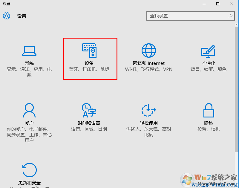 2、在設(shè)置界面中,選擇“設(shè)備”選項(xiàng);