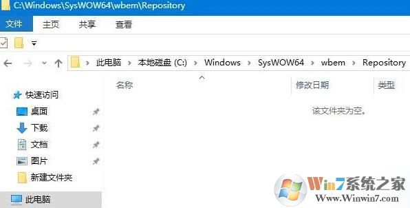 3、打開文件位置C:\Windows\SysWOW64\wbem\Repository,如果是32位系統(tǒng)則在C:\Windows\System32\