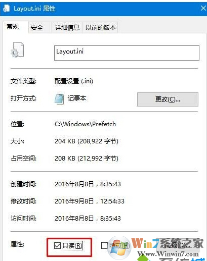 3、打開計(jì)算機(jī),打開:C:\Windows\Prefetch,然后雙擊打開“Layout.ini”,將里面的所有內(nèi)容清空,保存。