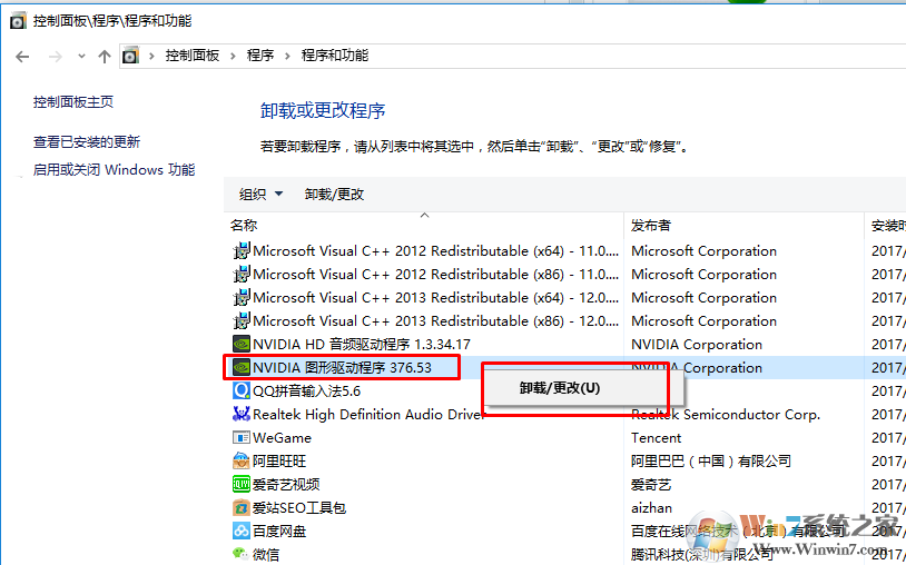 2、在控制面板里將獨立顯卡驅(qū)動或者獨立顯卡驅(qū)動的殘留項卸載掉。