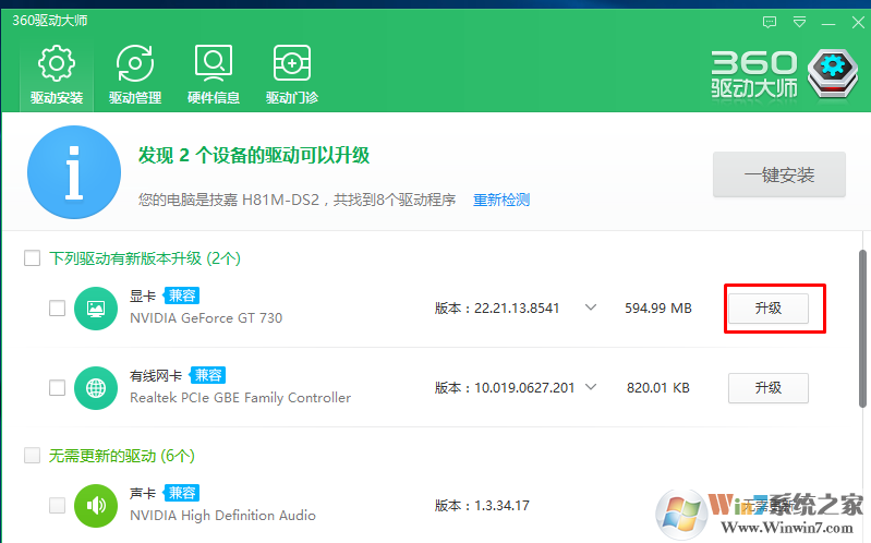 5、接下來安裝獨立顯卡驅(qū)動即可(可以選擇使用驅(qū)動精靈安裝或者360驅(qū)動大師)。