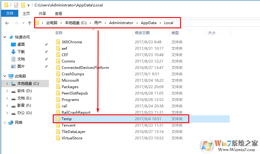 一、找到C盤目錄下的:C:\Users\ping\AppData\Local 這個(gè)目錄下邊有個(gè)Temp文件夾。將此文件刪除