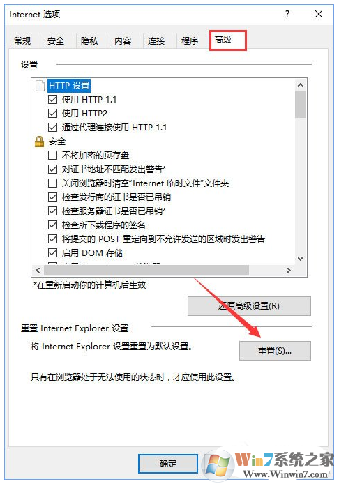 3、切換到 【高級(jí)】選卡,在高級(jí)選卡下面 點(diǎn)擊重置 按鈕;