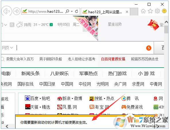 5、重置瀏覽器之后,會(huì)提示“你需要重新啟動(dòng)你的計(jì)算機(jī)才能使更改生效。”,之后我們關(guān)閉瀏覽器,然后重啟即可。