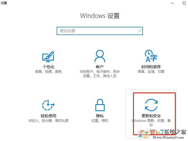 2、在設(shè)置界面拉到最下面我們可以看見windows更新,點(diǎn)擊進(jìn)入。