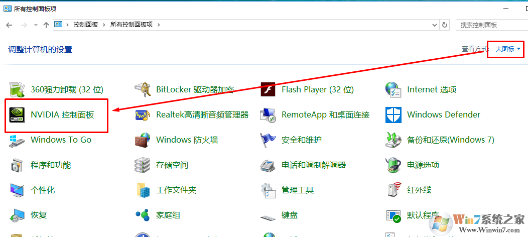 這時(shí)候我們就得從控制面板中進(jìn)入nvidia控制面板了。選擇大圖標(biāo)----nvidia控制面板