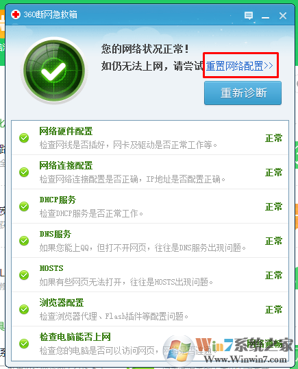 3、如果診斷之后沒有異常,我們就選擇重置網(wǎng)絡(luò)即可解決問題。