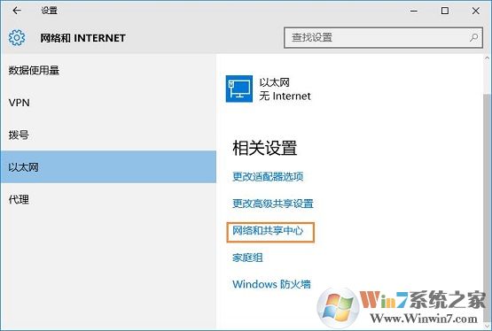 2、在設(shè)置界面,點(diǎn)擊“網(wǎng)絡(luò)和共享中心”,如圖所示: