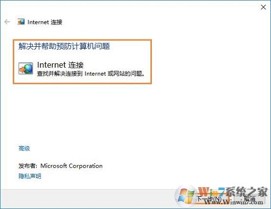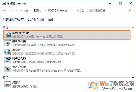 7、選擇“連接到internet的疑難解答”,如圖所示: