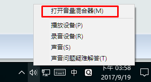 4、右鍵音量圖標(biāo),打開音頻混合氣。