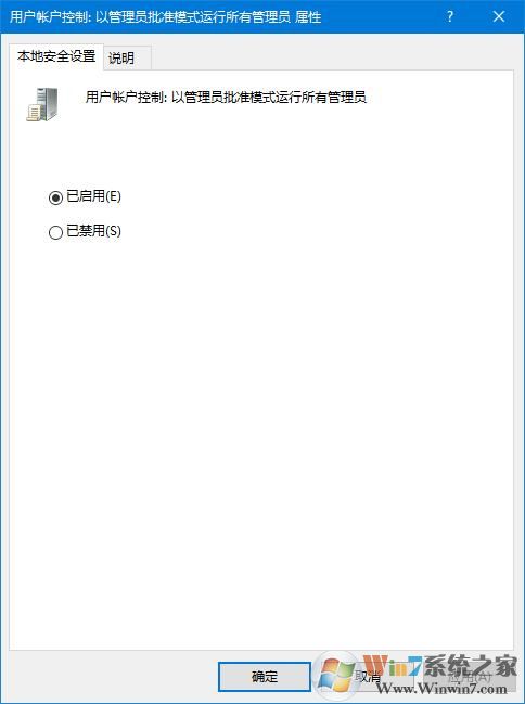 3、在右側(cè)雙擊打開“用戶賬戶控制:以管理員批準(zhǔn)模式運(yùn)行所有管理員”,選擇“已啟用”,點(diǎn)擊確定,并重啟計(jì)算機(jī)即可解決。