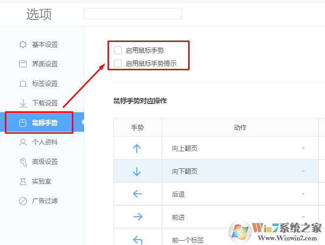 2、切換到鼠標(biāo)sh手勢,然后將手勢前的勾取消即可。