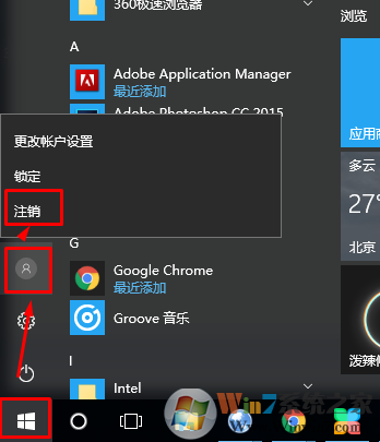 開始菜單點(diǎn)擊賬戶,我們就可以發(fā)現(xiàn)注銷按鈕了。