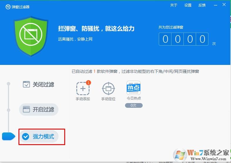 4、或者大家也可以使用強力模式,攔截彈窗更給力~(可以把一些非功能型的彈窗廣告都給屏蔽)