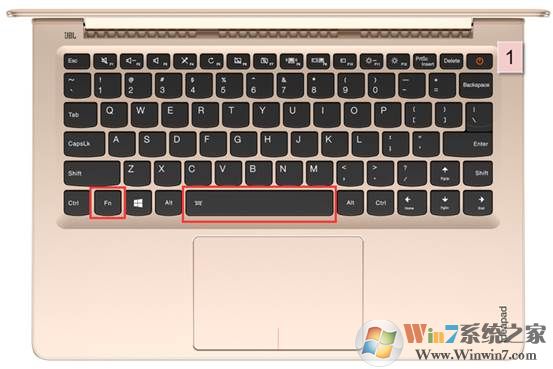 小新Air13:背光鍵盤標配,開啟快捷鍵是Fn鍵+空格鍵,如下圖:
