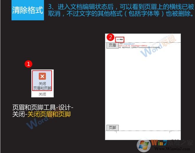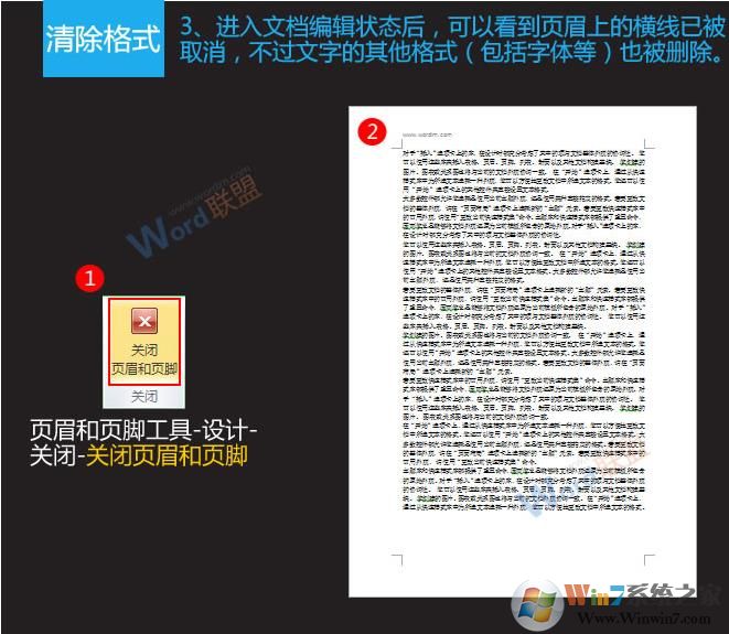 3、頁眉和頁腳工具-設(shè)計(jì)-關(guān)閉-關(guān)閉頁眉和頁腳,進(jìn)入文檔編輯狀態(tài),可以看到頁眉上的橫線已被取消。